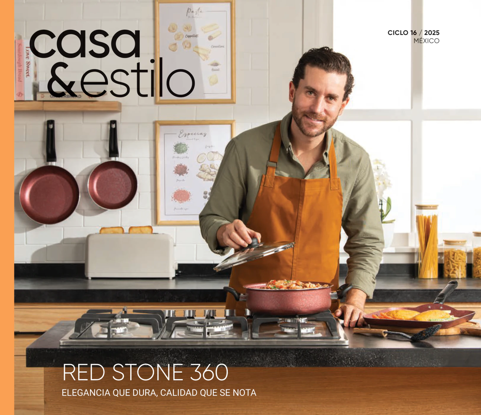 El Catalogo Avon Casa Estilo Ciclo 16 2025 incluye cacerolas, sartenes, juego de vasos, recipientes, colchas, cortina de baño, neceser, salida de baño y mucho más.