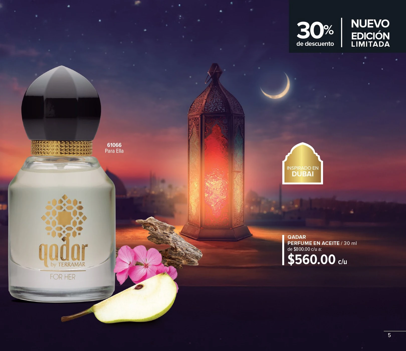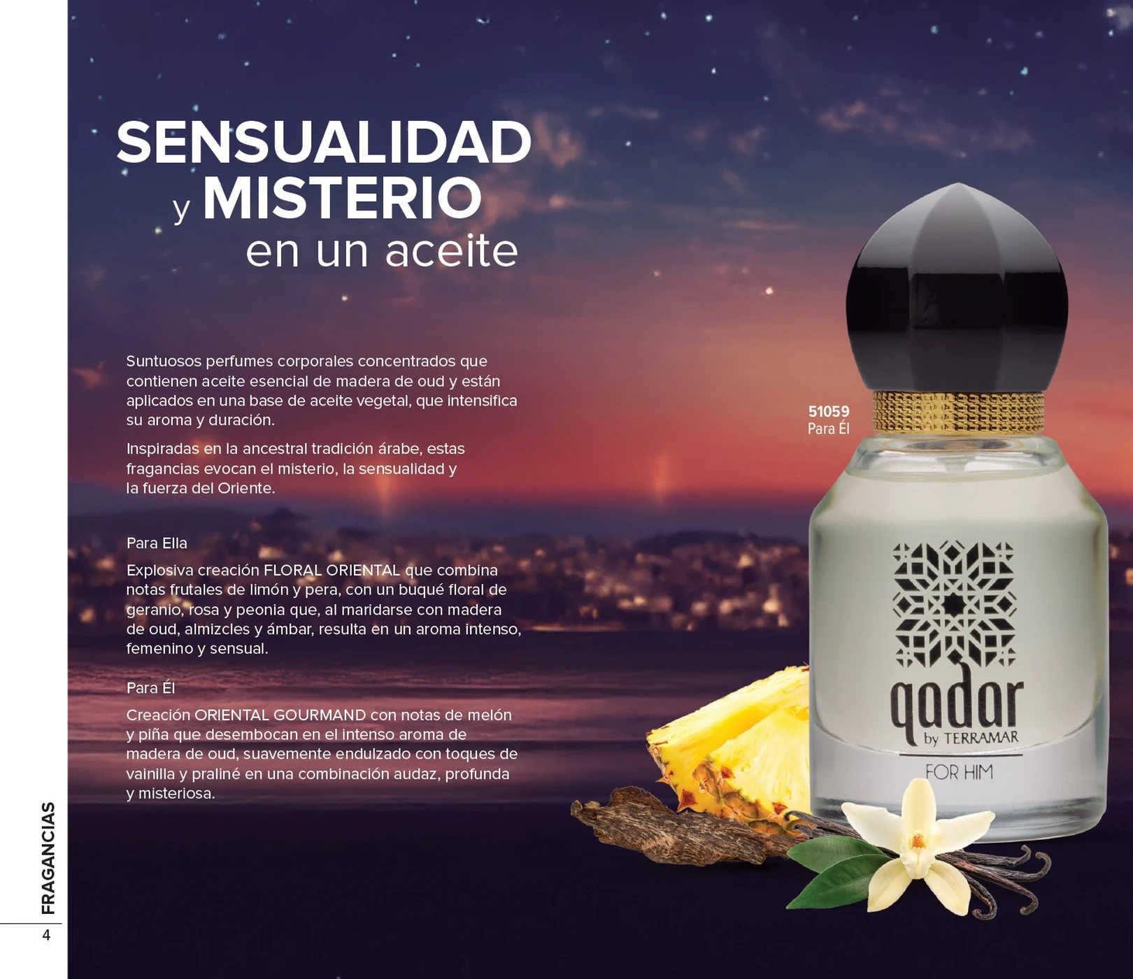 - Los Perfumes en Aceite Qadar (Para Él y Para Ella) están inspirados en Dubái, evocando misterio y sensualidad.