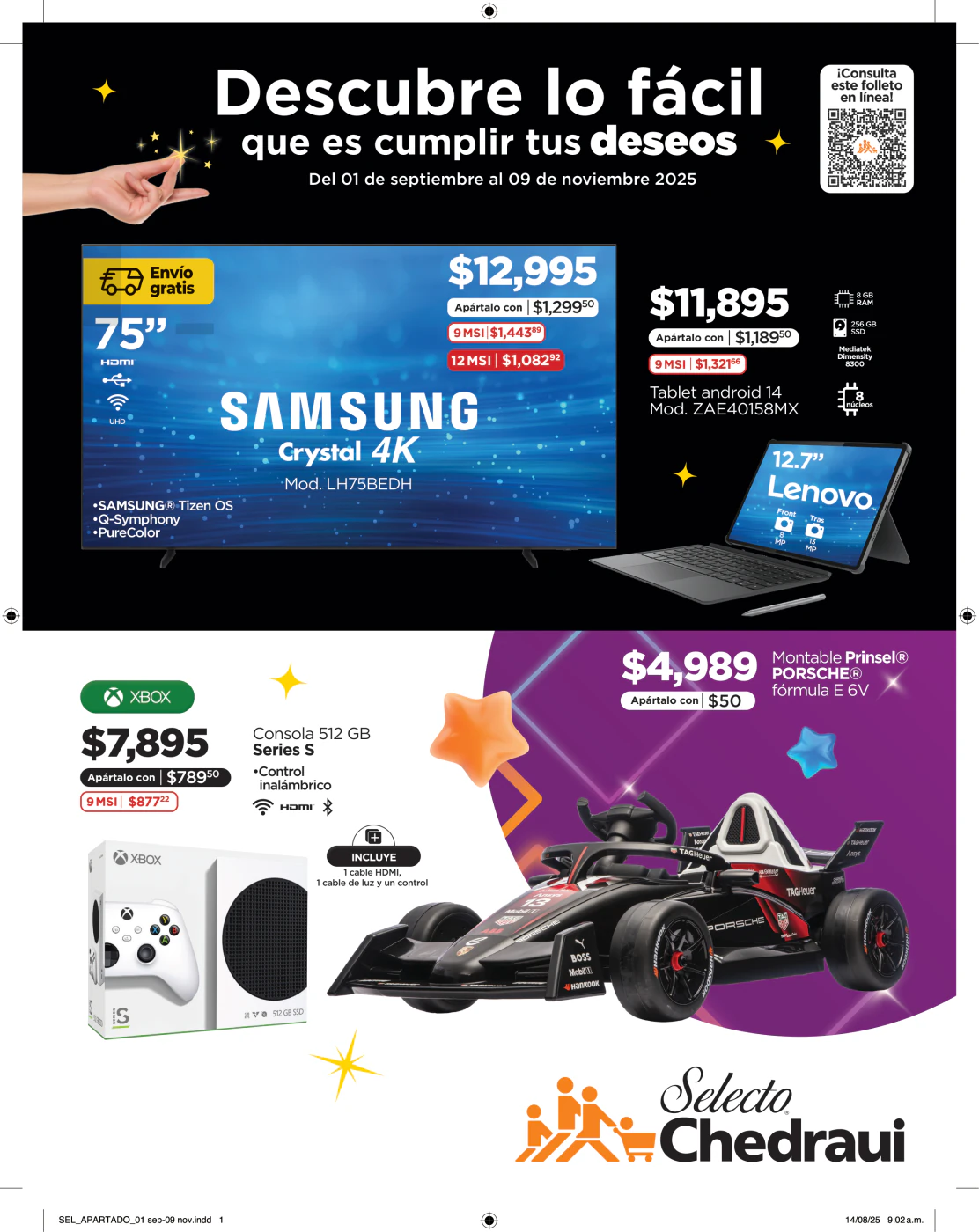 El catálogo de “Chedraui Selecto Oferton” trae pantallas de 75 pulgadas, montables, consola Xbox, bocina JBL, celulares, laptops, refrigerador, chamarras, juguetes, motos y más. ¡Consulta los precios vigentes del ofertón!