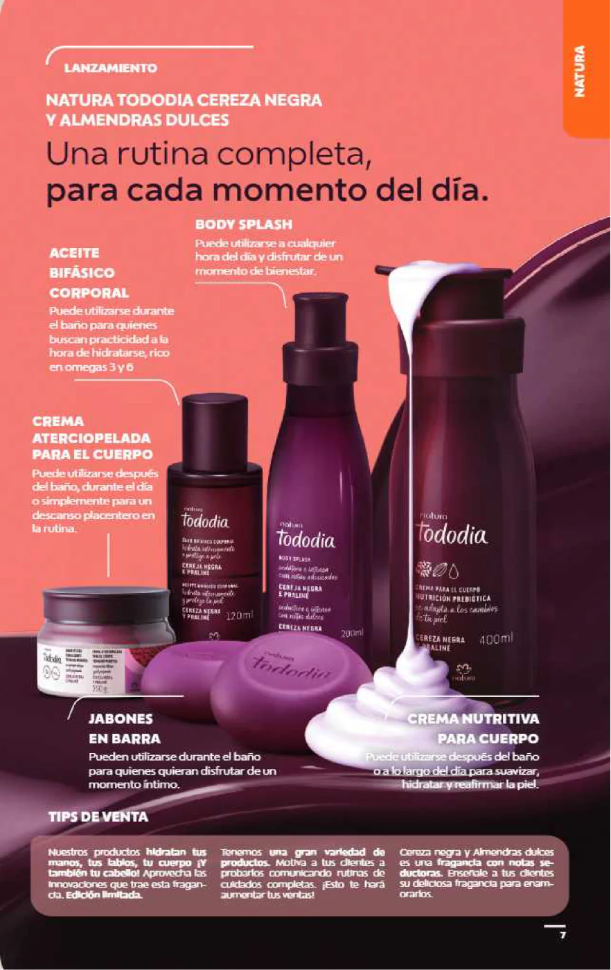 - Natura Tododia Cereza Negra y Almendras Dulces es el lanzamiento principal, con una rutina completa que incluye Aceite Bifásico y Crema Aterciopelada.