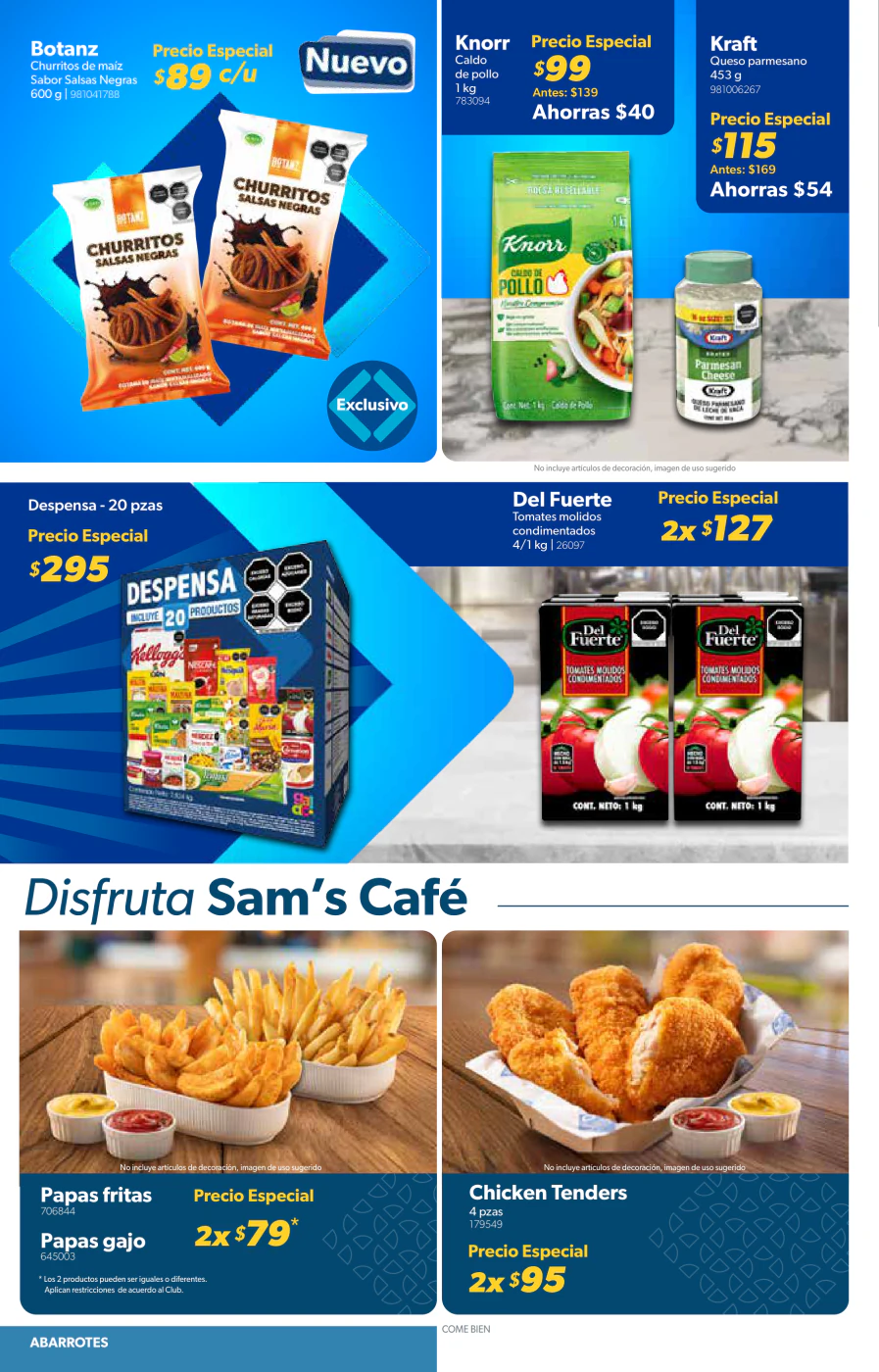 - Despensa y Granel: La base del ahorro en Sams. Busca precios especiales en víveres no perecederos, café gourmet, y productos para hornear en presentaciones de mayoreo, perfectas para las cenas familiares.