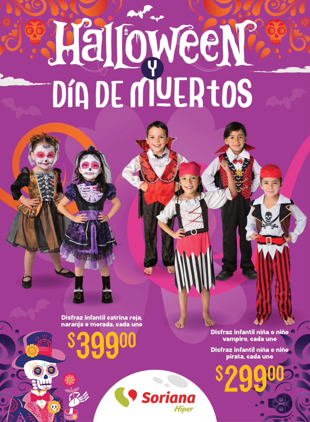 El catálogo de “Hiper Halloween y Dia de Muertos 2025” trae de todo para celebrar nuestras tradiciones mexicanas. Desde disfraces infantiles, mascaras de terror, arañas decorativas, calabaza decorativa, pan de muerto, dulces y mucho más. ¡Revisa los precios vigentes hoy!