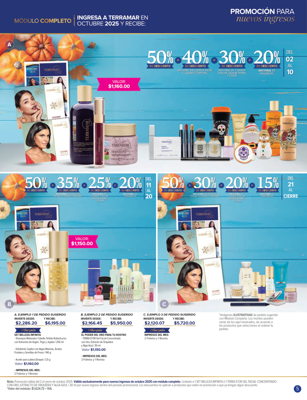 Es importante que todas las Consultoras y Líderes tomen en cuenta que las promociones y los kits de ingreso en la Revista Terramar Octubre 2025 son válidos desde el 2 de octubre de 2025 hasta el cierre de pedidos del mismo mes. Las ofertas están sujetas a la disponibilidad y existencia de los productos.