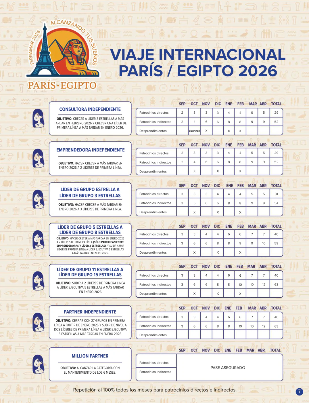 - El gran incentivo de Viaje Internacional 2026 es una aventura a París y Egipto, con bases que inician en octubre.