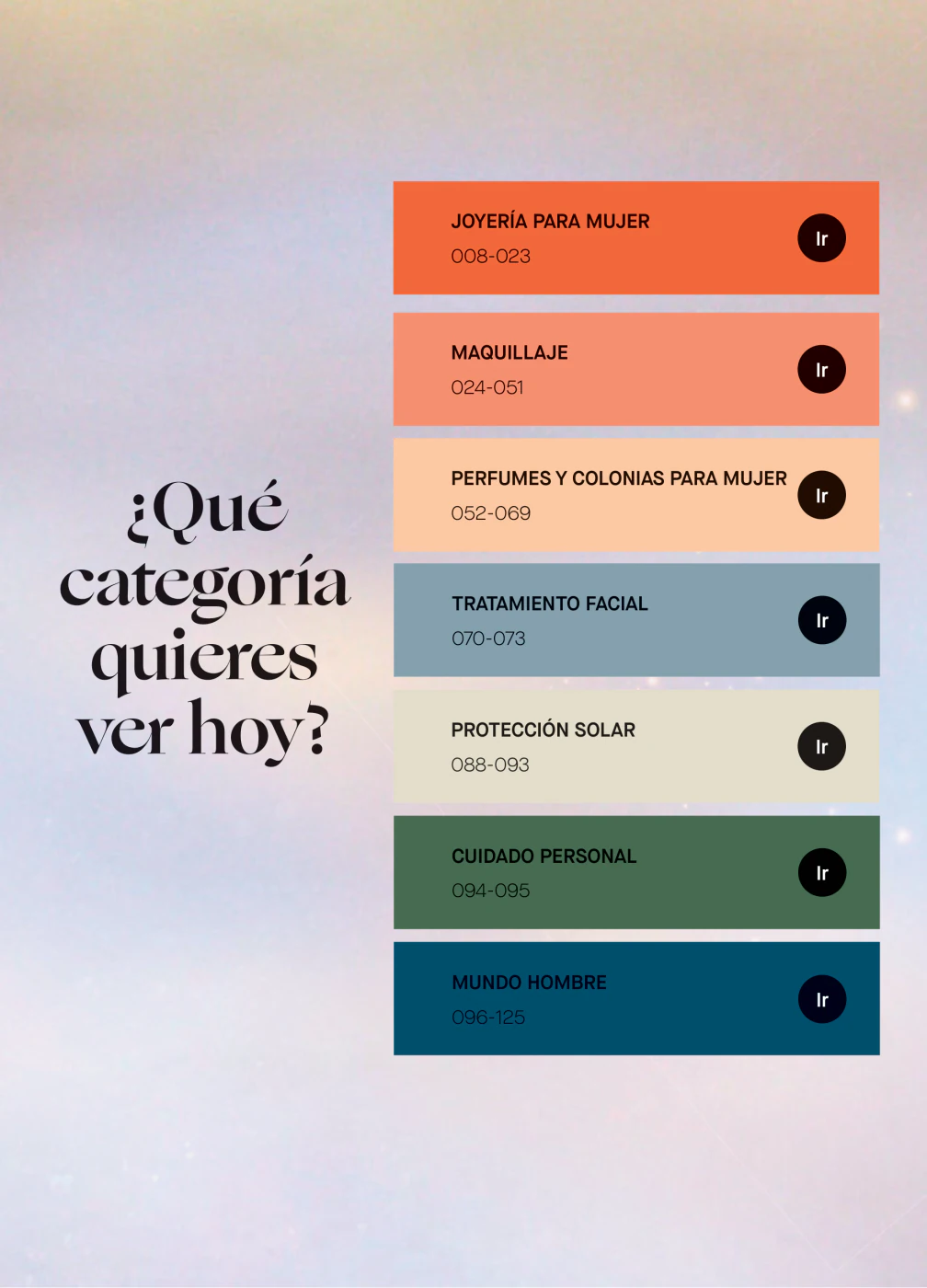 Aquí está la mayor variedad de lápiz de labios, delineador de ojos, polvo compacto, maquillaje líquido, aretes, y más. Descubre todas las novedades del catálogo de cosméticos.