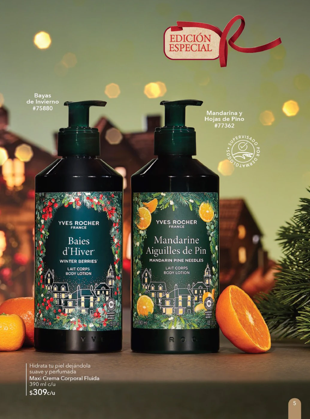 La Yves Rocher Campaña 15 2025 se sumerge de lleno en el espíritu navideño con sus ediciones especiales de gel de ducha y cremas corporales. Los aromas de Mandarina y Hojas de Pino, con un toque chispeante, y Bayas de Invierno, que evoca calidez, son un must de la temporada.